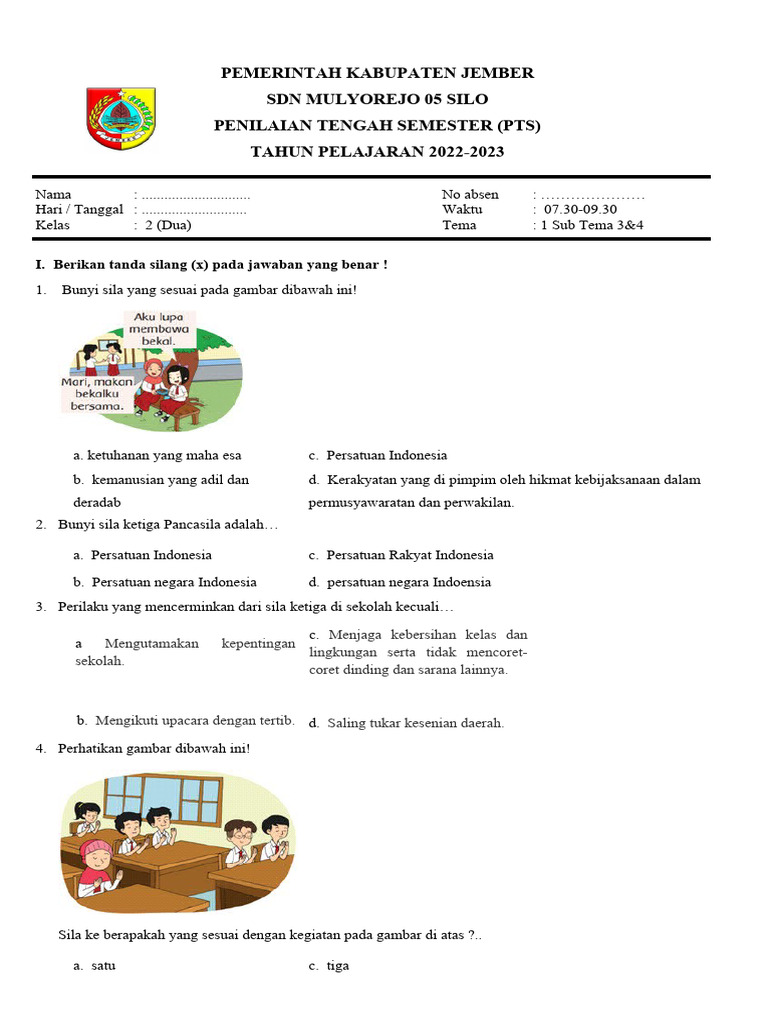 Soal pilihan ganda adalah format yang umum digunakan untuk menguji pemahaman konsep dasar. Berikut adalah beberapa contoh soal pilihan ganda yang relevan dengan sub tema 4: